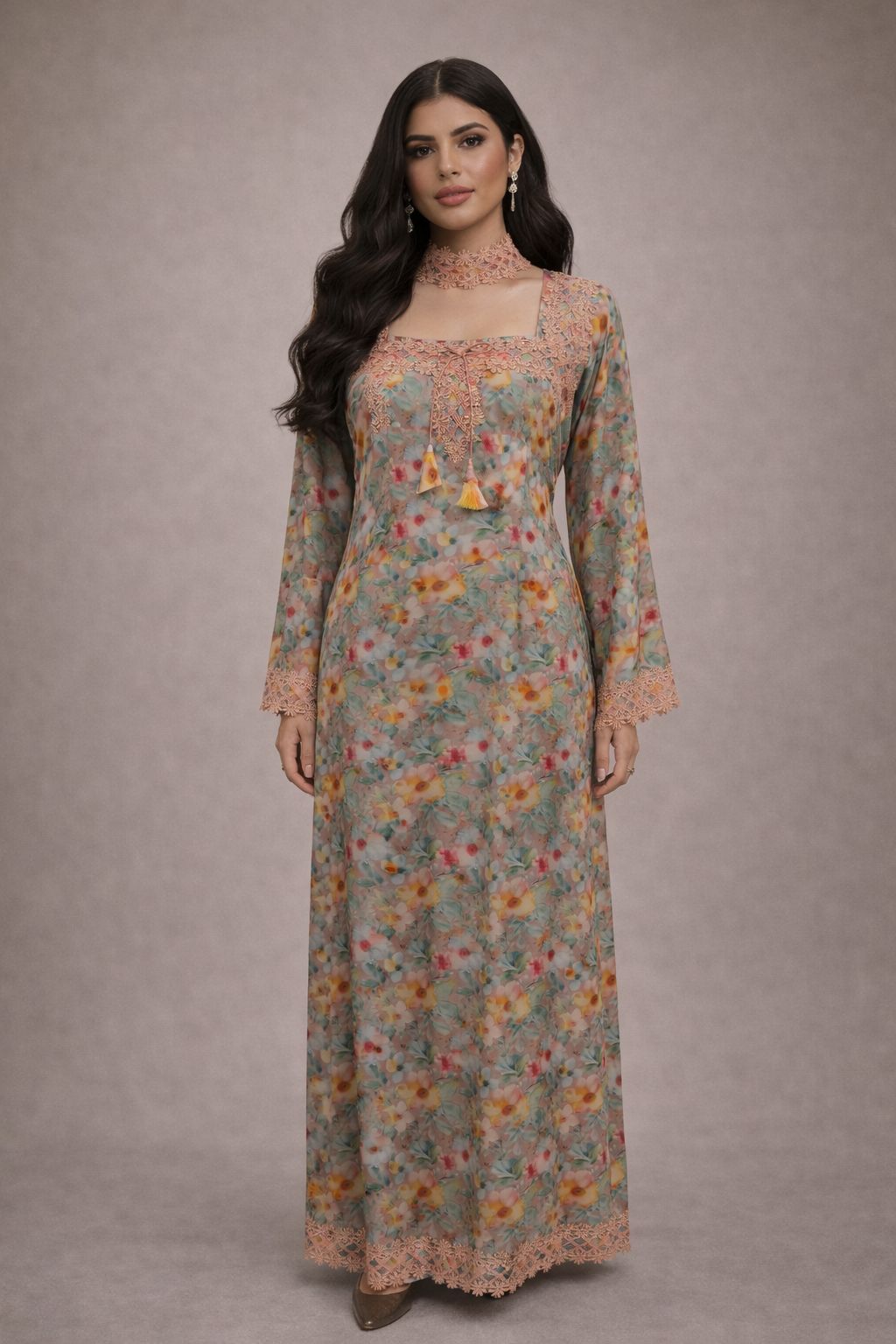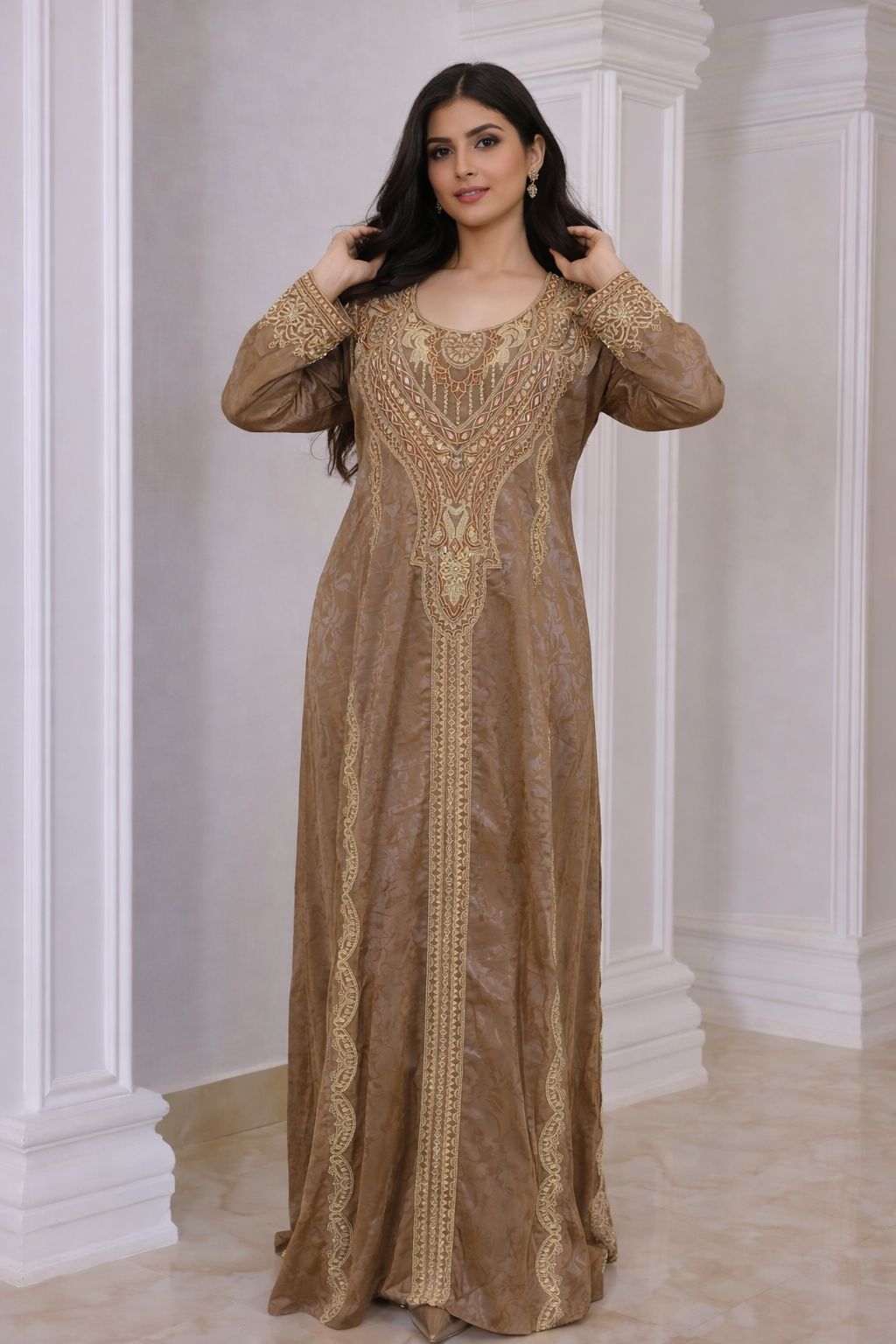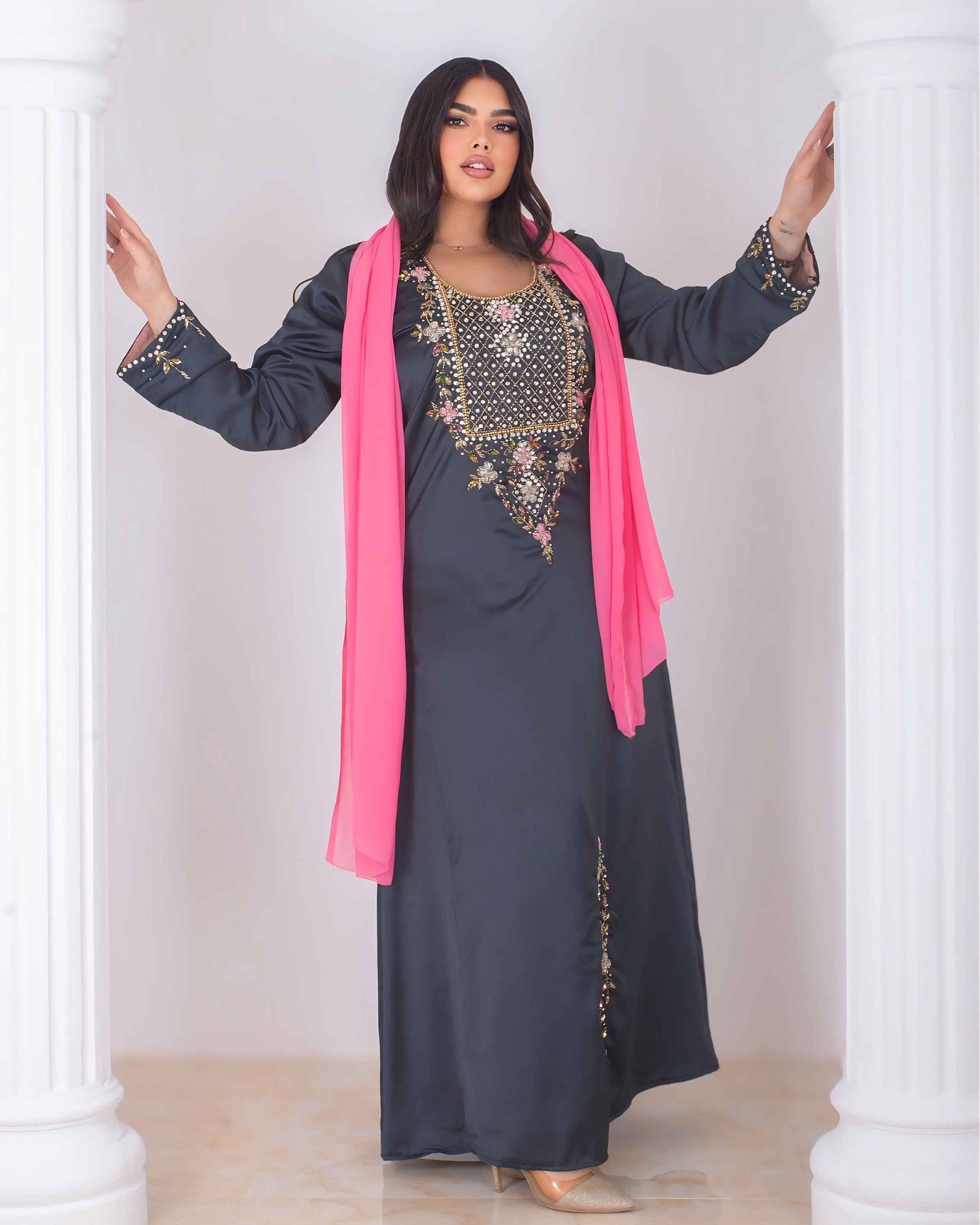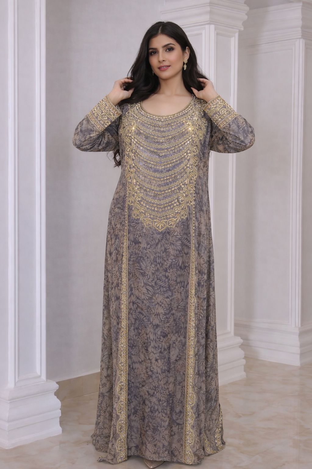 • Fit: Loose, modest, flowing kaftan-style fit