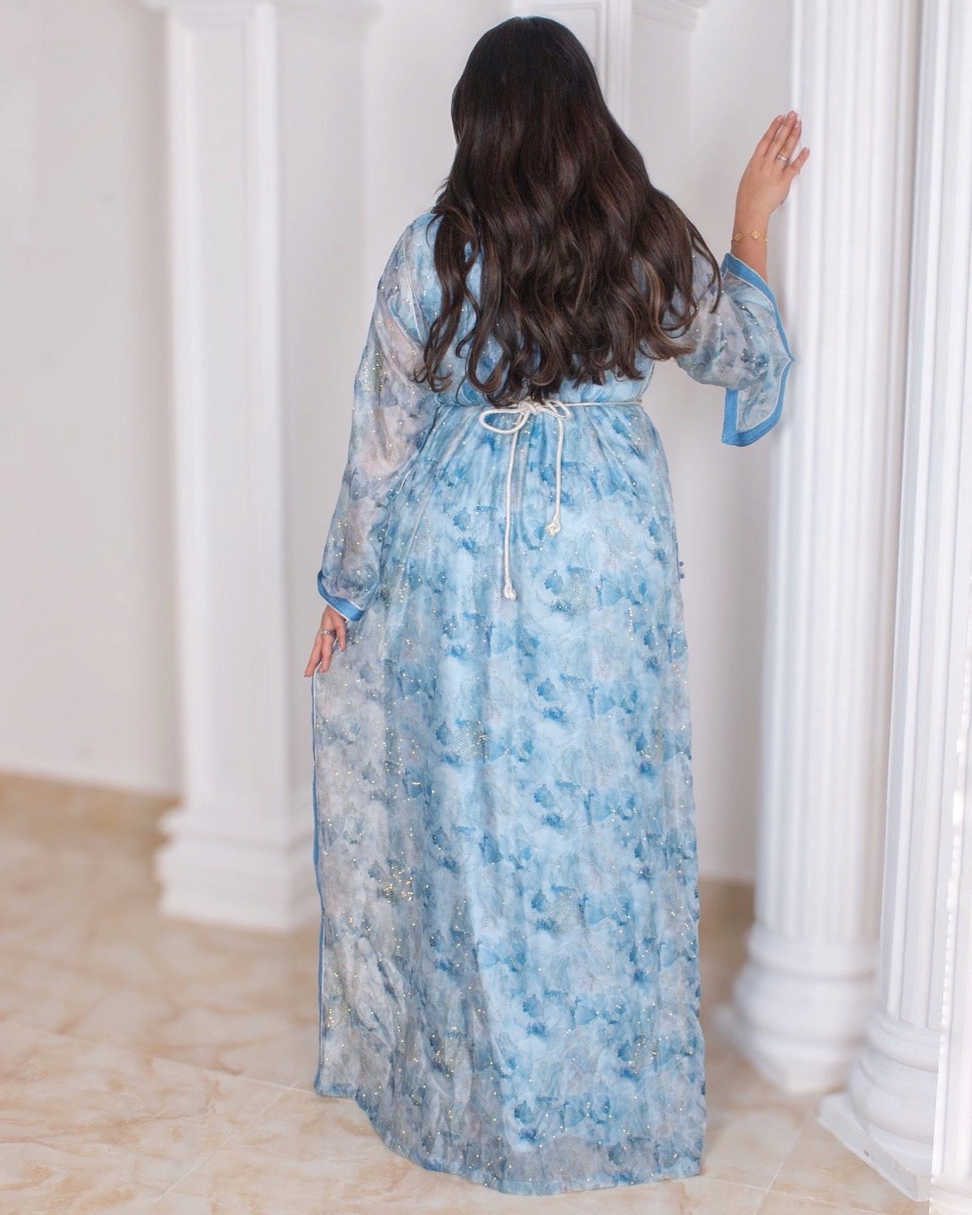 Elegant Watercolor Blue Mukhawar with Waist Belt